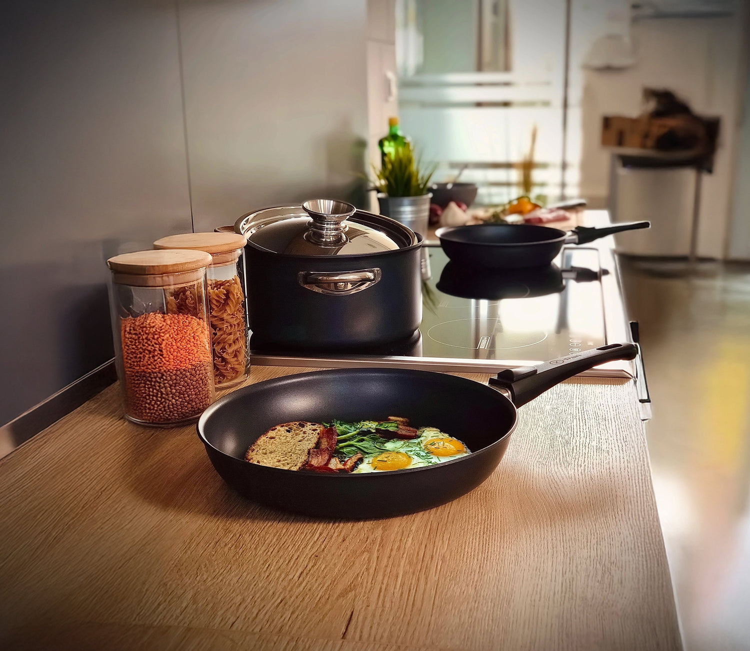 Mit der HIFFICIENCY® X-Pan Pfanne kocht man jeden Tag wie die Profis in der Sterneküche – mit dem zusätzlichen Vorteil eines neuen, besonders stabilen abnehmbaren Griffs.