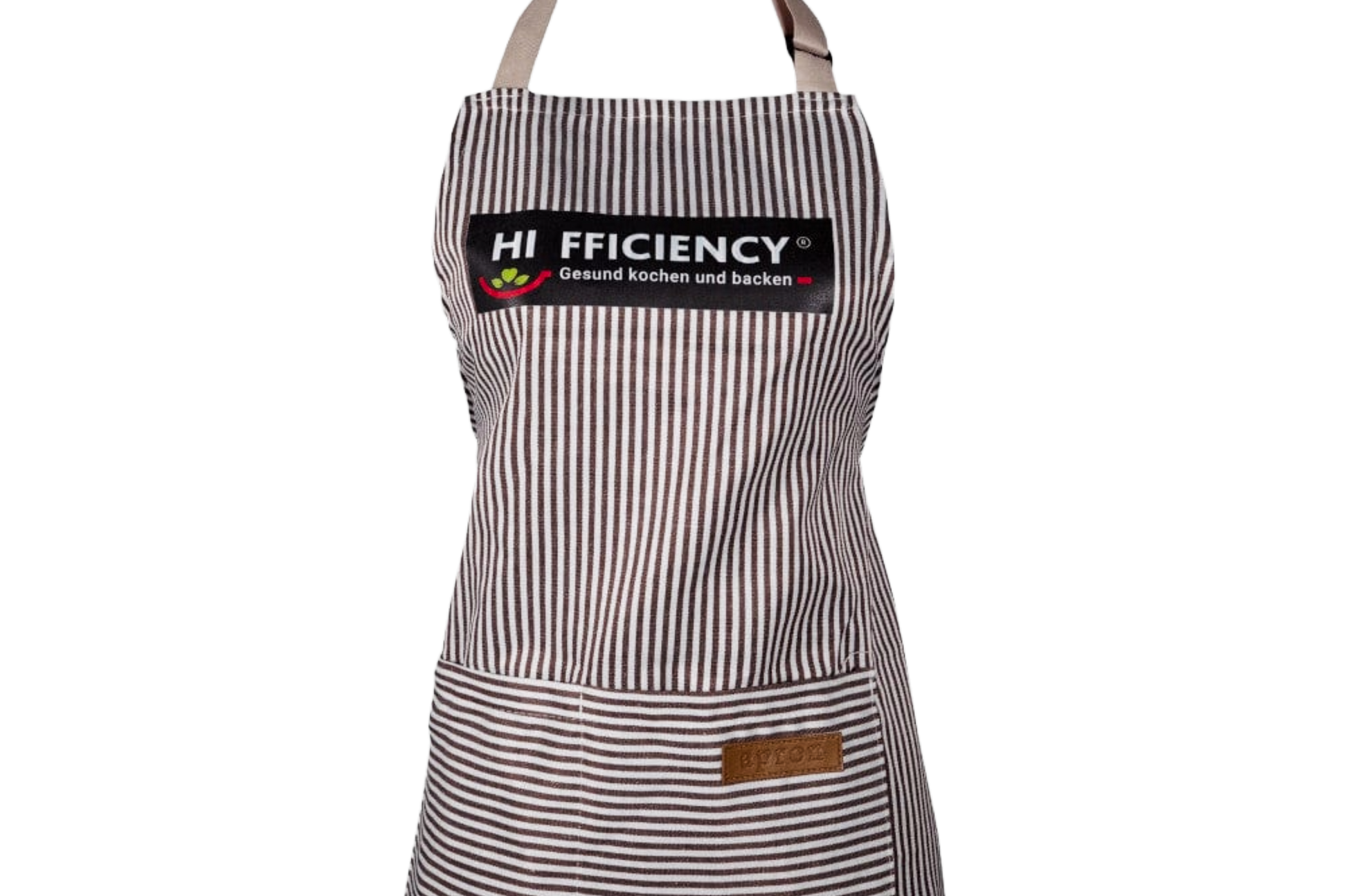 Unisex Kochschürze mit 2 Taschen, weiß-braun gestreift